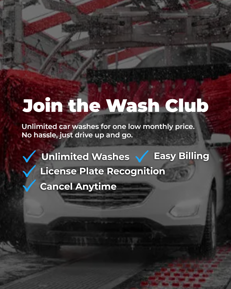 Choose from Wash Clubs, Single Washes, Washbooks, and Gift Cards to keep your car shining and save on every visit!
